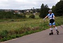 •  Sprzęt: specjalne rolki terenowe na 2 większych niż tradycyjne pompowanych kołach.W zależności od producenta, można jeździć we własnych butach (Skike), lub w bucie zespolonymz szyną (Powerslide). Posiadają one również tzw. hamulec łydkowy, który bardzo skutecznie działa, co przydaje się zwłaszcza w trudniejszym terenie,